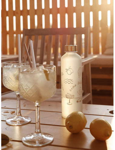 Kvaliteetsest borosilikaat klaasist Equa joogipudel. 100% lekkimiskindla korgiga veepudel. Pudelit võib pesta nõudepesumasinas. Valmistatud EU-s.